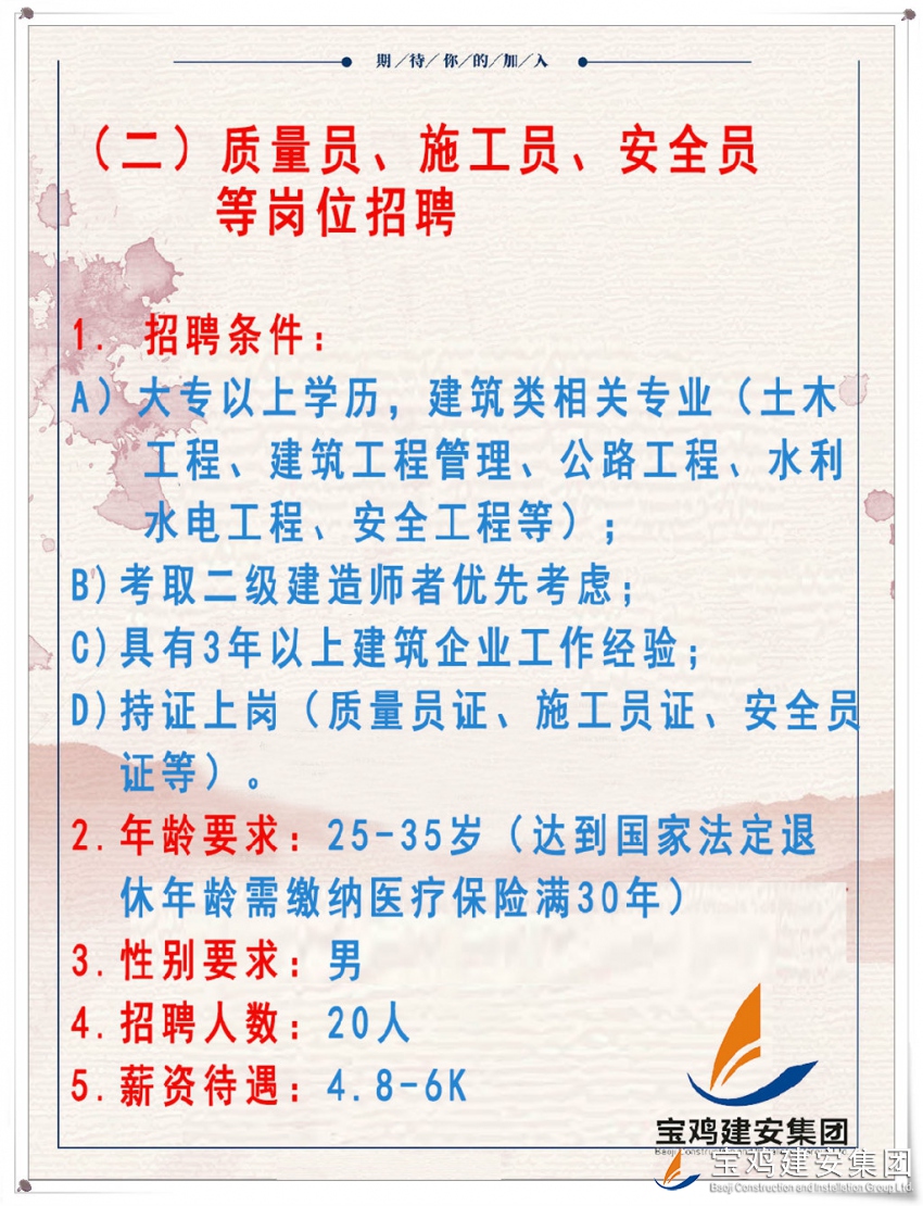 寶雞建安集團股份有限公司2019年招聘火熱進行中......