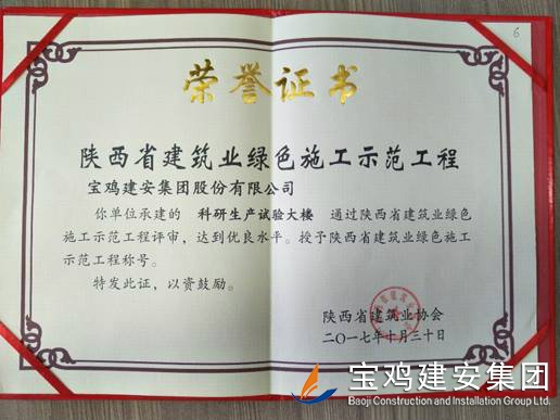 2018年1月26日在西安召開了陜西省建筑業協會第六屆二次理事會議,我公司承建的科研生產試驗大樓、寶雞蟠龍新居SF05標段,高新五路明星佳苑、新建路市場改造項目(民豐國際)、中聯國際廣場項目,在2017年度綠色施工評審過程中,達到優良水平,被授予陜西省建筑業綠色施工示范工程稱號。 此次榮譽的獲得離不開公司各職能部室的指導與項目部的辛勤努力,項目部能緊跟建筑行業發展的大方向,不斷加強綠色施工過程管理的學習,在施工過程中圍繞著“四節一環保”理念,堅持走節能降耗,增效降本,可持續發展的施工道路,最終取得了可喜的成績。 公司綠色施工整體水平近年來得到顯著提高,希望各項目部在2018年的施工過程中,以文明施工,綠色施工標準嚴格要求自己,力爭在施工管理方面取得更高的成績。