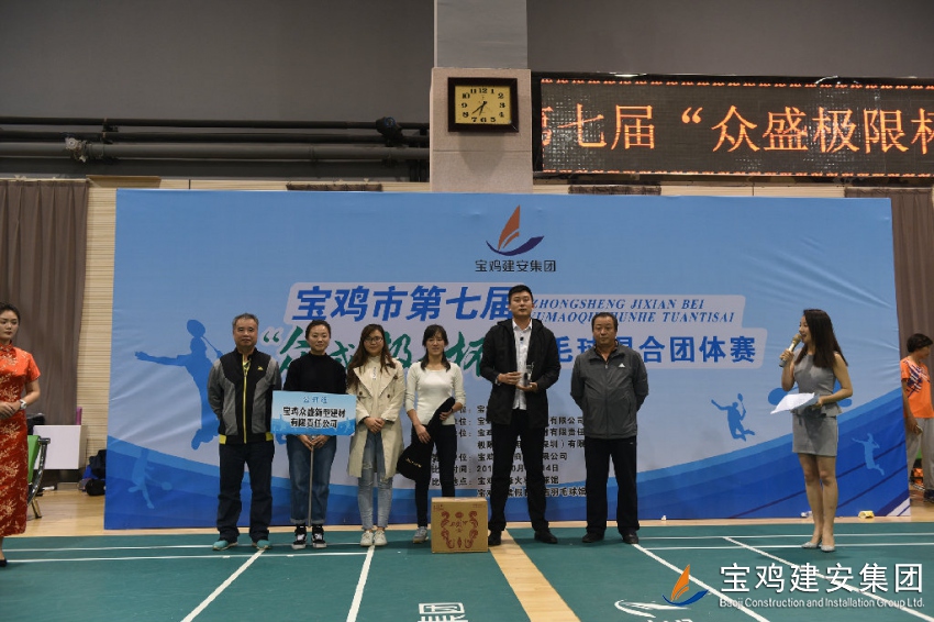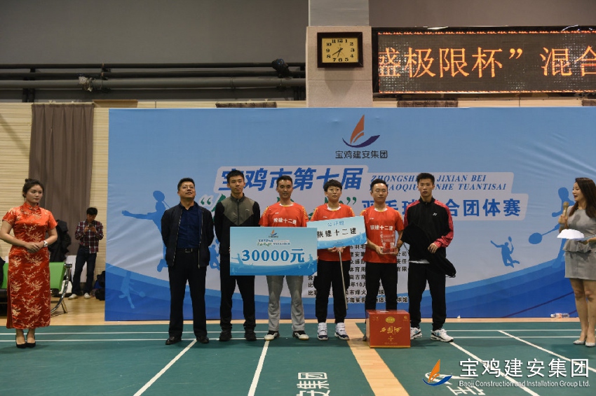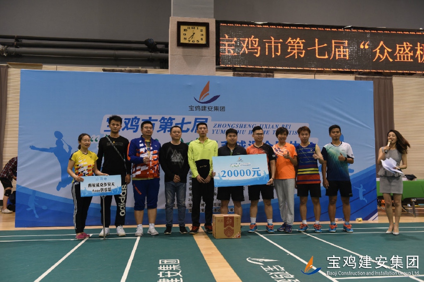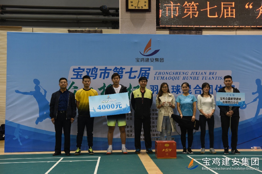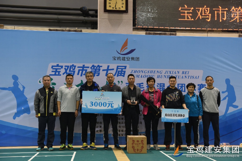本項賽事設企業組和公開組兩個組別,企業組的冠、亞、季軍分別是寶雞建安集團隊、眾盛建材隊、岐山羽協隊,榮獲四、五、六名的是寶雞文理學院隊,新豐鎮機務段隊、豐彩體育隊。公開組的冠、亞、季軍分別是寶雞建安集團隊、陜西建工第十二建隊、眾盛建材隊,榮獲四、五、六名的是昊天隊、陜西省羽毛球隊、川崎零度隊。本次承辦的寶雞建安集團股份有限公司、冠名的寶雞眾盛新型建材有限責任公司分別將獲得的獎金按照排名依次順推,第七、第八名球隊意外得到獎金、收獲驚喜。
