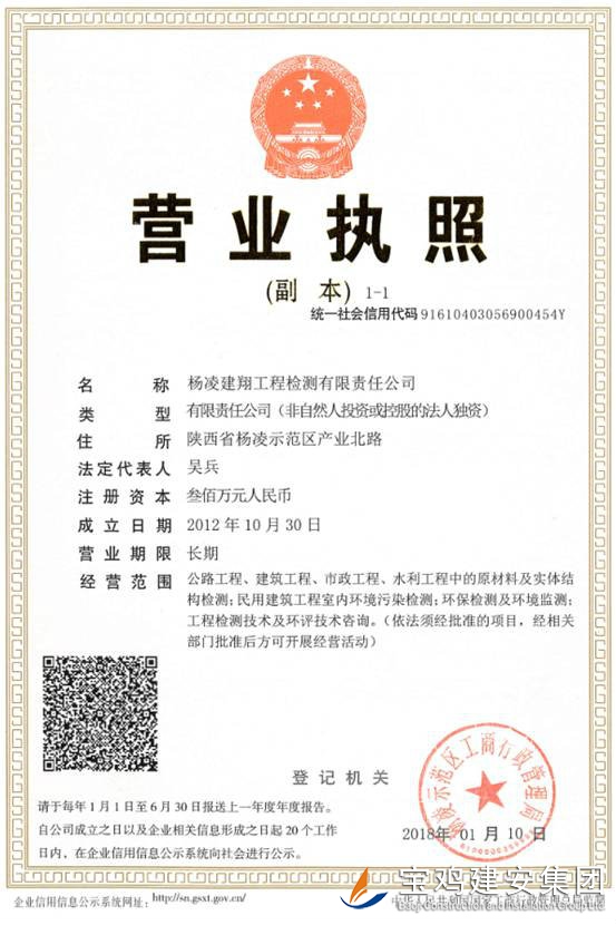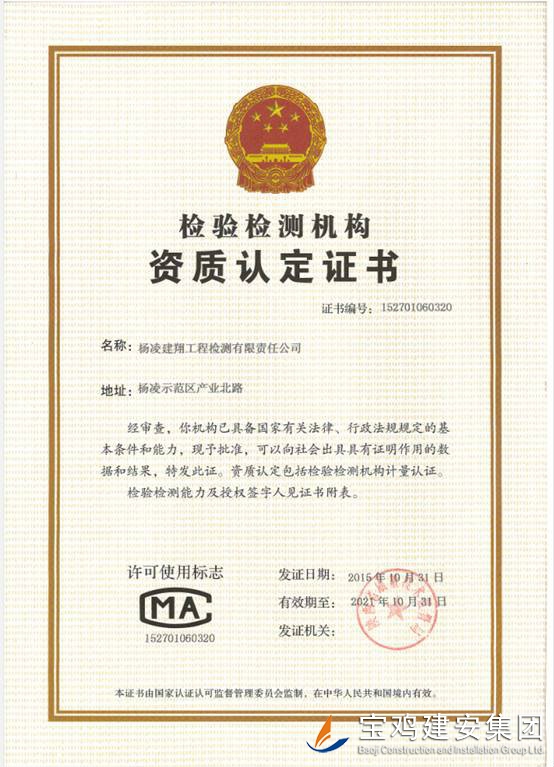 楊凌建翔工程檢測有限責任有限公司,由陜西省楊凌示范區規劃建設局批準,于2012年12月在陜西省楊凌示范區工商行政管理局注冊成立的股份制企業,具有獨立法人資格的檢測機構。并于2015年1月通過陜西省質量技術監督局的認評取得計量認證證書。本公司主要從事工業與民用建筑工程各項試驗檢測業務。