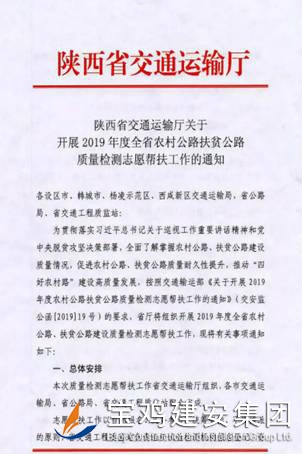 今年8月底,陜西省交通廳下發《關于開展2019年度全省農村公路扶貧公路質量檢測志愿幫扶工作的通知》,通知轄區內試驗檢測機構自愿報名參加扶貧公路義務檢測活動,對自愿報名并且通過資格能力審核的檢測單位隨機抽取各市的待檢縣,實施幫扶檢測活動,并要求于10月中旬完成檢測數據匯總表和分析報告上報工作。