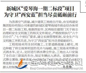 為改善空氣質量,減少建筑工地揚塵污染,由寶雞建安集團股份有限公司承建的新城區愛琴海城市商業綜合體項目一期二標段工程,根據西安市、區兩級住建部門關于揚塵治理和安全文明施工的相關文件規定,嚴格按照執行“六個百分百”、“七個到位”要求,建立長效管理機制,安全生產與文明施工齊抓共進,為守衛“西安藍”擔當盡責砥礪前行。
