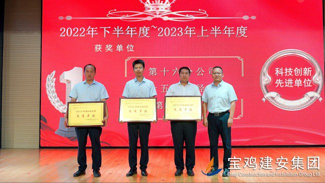 為激勵先進、樹立榜樣,會議第二項由質(zhì)量部經(jīng)理韓宇龍宣讀了《關于表彰2022下半年至2023上半年科技成果獎勵、科技創(chuàng)新先進單位、BIM推廣應用先進單位的決定》并主持頒獎。2022下半年~2023上半年度共獲得省級QC一類成果3項,省級QC二類成果5項,省級QC三類成果4項,實用新型專利17項,各類BIM獎項7項,并授予第十六分公司、第十五項目經(jīng)理部、第四分公司為科技創(chuàng)新先進單位榮譽,授予西安分公司為BIM推廣應用先進單位榮譽??偨?jīng)理胥永寧及公司相關領導為獲獎單位頒發(fā)了獎勵。