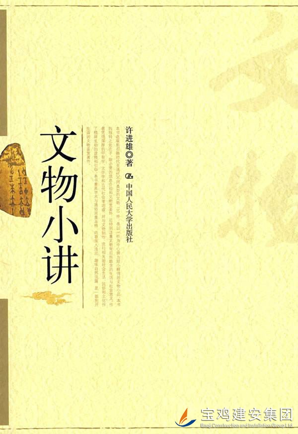公司開展“書香企業(yè)”讀書月活動,提供了大量優(yōu)秀的各類書籍供員工閱讀,我有緣拜讀到一本臺灣著名學者許進雄先生的作品《文物小講》。 這本書以通俗易懂而不失學術的小品文方式,介紹了150件中國文物。文物歷史橫跨新石器時代至清代,文體精悍短小,詮釋精辟生動,讓人閱讀時仿佛置身博物館中游覽,不知不覺引人入勝。