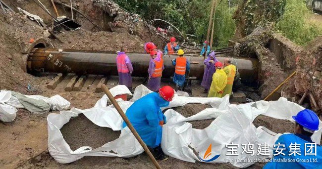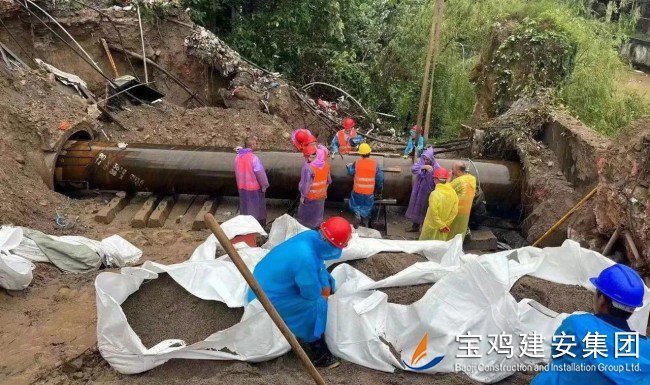 筑牢一線戰斗堡壘。“一個團隊就是一座戰斗堡壘、一名搶險者就是一面旗幟”。現場情況極端復雜,雨水管道直徑1.6米,爆管距離9.32米,水流湍急,形勢險峻。經我單位同市政公司反復溝通,最終確定了較為科學的搶修方案:在水泥管中間穿12米長鋼管,采用中間焊接兩端包口的方式進行連接…… 項目的難點在于工作面需要挖填及支護土方2000余方,12米長5.2噸重鋼管穿于固定水泥管9.3米斷口內,帶水連接。從7月27日下午5點,到7月28日下午7點,幾乎是晝夜兼行,持續工作26小時后,大家這才長長吁了一口氣。 終于可以給上級部門一個滿意的回復了; 終于可以給廣大受災的群眾居民一個圓滿的答復了; 終于及時完成了此次搶修任務,可以踏踏實實睡一個安穩覺了……